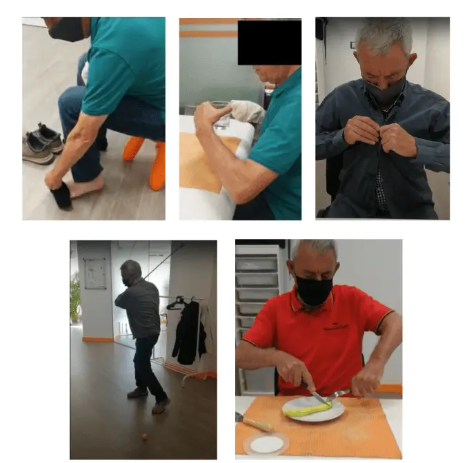 Presenta dificultades generalizadas en su extremidad superior izquierda (movilidad, fuerza, destreza, sensibilidad…) y más acusadas en mano y dedos. A la hora de realizar sus actividades de la vida diaria es bastante autónomo, aunque precisa de ayuda para realizar aquellas tareas que requieren una mayor precisión y coordinación por parte de ambas manos, y ha dejado de incluir su mano izquierda prácticamente en la totalidad de las mismas (“aprendizaje por desuso”).